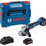 Акумулаторният ъглошлайф Bosch GWS 18V-10C предоставя мощност, равна на 1000 W на захранван от мрежата ъглошлайф чрез безчетков мотор и ProCORE18V технология на акумулаторната батерия. Характеризира се с повишено ниво на защита на потребителя и удобство чрез Drop Control, KickBack Control и интелигентна спирачна система. Първата в света функция Drop Control изключва инструмента незабавно при случайно изпускане на пода. Доставя се в куфар с 2 батерии 18 V, 5 Ah, бързозарядно устройство, бързозатягаща гайка, заден фланец и защитен кожух.0041711