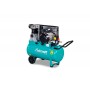 Компресор с проста конфигурация, с доказано ремъчно задвижване и 2-цилиндров високопроизводителен агрегат, изработен от сив чугун за дълъг експлоатационен живот. Голямо колело на вентилатора и охлаждаща въздушна преграда на цилиндъра за оптимално охлаждане на компресора. Висококачествен електрически двигател с висок въртящ момент. Електрически мотор, оборудван с предпазител за защита на двигателя. След охлаждане с охлаждащи перки се осигурява ниска температура на входа и по този начин по-малко влага в сгъстения въздух. Здрава предпазна решетка от метал. 400-волтовите модели с фазов инвертор като стандартно устройство за лесно ръчно обръщане на посоката на въртене. Резервоар за сгъстен въздух, снабден с предпазен клапан, манометър и изпускателен клапан за кондензат. Редуктор на налягането за безстепенно регулиране на желаното работно налягане. Манометър за налягане на резервоара. Манометър за работно налягане. С всички устройства за безопасност. Напълно свързан.