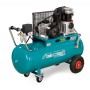 Компресор с проста конфигурация, с доказано ремъчно задвижване и 2-цилиндров високопроизводителен агрегат, изработен от сив чугун за дълъг експлоатационен живот. Филтър за регулиране на налягането с манометър. Голямо колело на вентилатора и охлаждаща въздушна преграда на цилиндъра за оптимално охлаждане на компресора. Висококачествен електрически двигател с висок въртящ момент. Електрически мотор, оборудван с предпазител за защита на двигателя. След охлаждане с охлаждащи перки се осигурява ниска температура на входа и по този начин по-малко влага в сгъстения въздух. Здрава предпазна решетка от метал. 400-волтовите модели с фазов инвертор като стандартно устройство за лесно ръчно обръщане на посоката на въртене. Резервоар за сгъстен въздух с прахово покритие и десетгодишна гаранция срещу ръжда, снабден с предпазен клапан, манометър и изпускателен клапан за кондензат. Манометър за налягане на резервоара. Манометър за работно налягане. Ергономична транспортна дръжка и колела за лесен транспорт. С всички устройства за безопасност. Напълно свързан.
