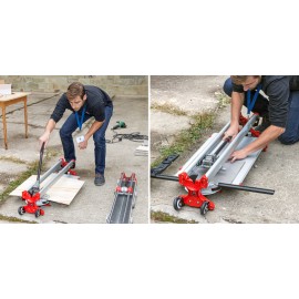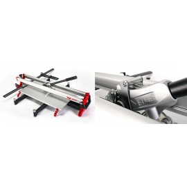 Професионална машина за рязане на керамични плочки. Притежава високоефективна подвижна система за счупване на сряза и е идеална за рязане под ъгъл от 0 до 45 градуса. Има изключително прецизна система за измерване на ъгъла. Със страничен стоп за повтарящи се срезове и срезове под ъгъл 45 градуса. Хромирани стоманени водещи шини с антикорозионна защита. Високоустойчива двупластова алуминиева основа, поглъщаща ударите и допълнителна основа за плочи с по-голям размер. 0401073