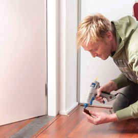 Пистолет за лепене при висока температура (195 °C) със сменяем накрайник срещу прокапване. Със своя свалящ се кабел пистолетът може да се използва на всяко място без включено електричество. Благодарение на добрата си ергономичност (превключвател вкл./изкл., T-образна ръкохватка, стабилна основа, разгъваща се стойка срещу преобръщане) и сменяем накрайник, той е идеален за лесни проекти „Направи си сам” за дома и на открито, като ремонтиране на мебели, лепене на дърво, керамика и т.н. 041DRM454