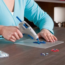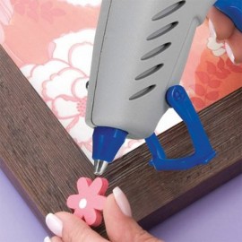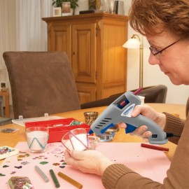Пистолет за лепене с две температурни настройки особено подходящ за прецизно лепене. С нискотемпературната настройка инструментът е идеален за разнообразие от творчески хоби приложения, като албум за изрезки, декориране, цветно лепене върху стъкло и т.н. Заедно с включените 7 мм блестящи лепилни пръчки можете да прибавите блясък и да направите красиви декорации. За лесни проекти „Направи си сам” за дома, като лепене на керамика, дърво, пластмаса, стъкло, използвайте настройката с висока температура. Благодарение на своя прецизен накрайник срещу прокапване няма да разливате лепило върху Вашия проект. 041503