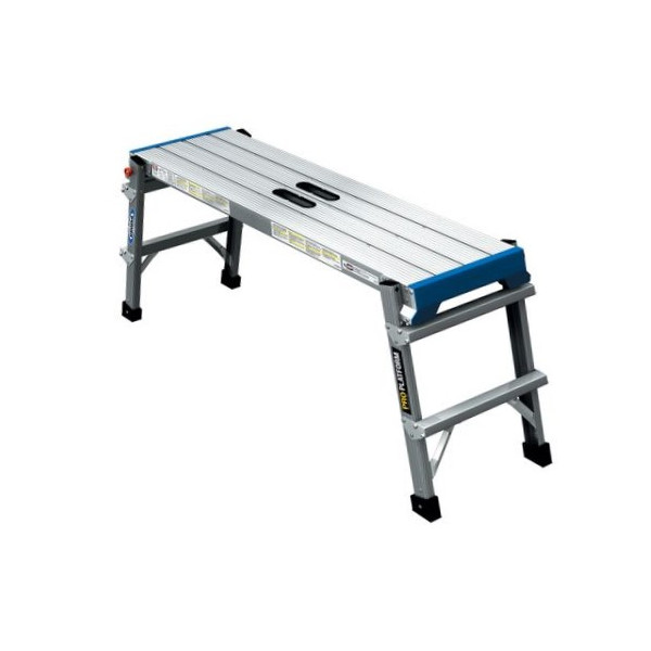 Работната платформа Werner Compact PRO има голяма работна повърхност и е идеална за всички видове работа около работната площадка. Изработена е от алуминий и има максимална товароносимост 150 кг. Максималната работна височина е 226 см. Голямата платформа с размери 115х30 см осигурява неплъзгаща се работна повърхност, като стъпалата също са противоплъзгащи. Двойните самозаключващи се крака сигурно се заключват при отваряне и се заключват отново при затваряне. Тапите им осигуряват устойчивост на плъзгане и предпазват пода от повреда. След сгъване платформата става плоска с компактна дълбочина 8 см за лесно съхранение и транспортиране. За удобно пренасяне е предвидена дръжка Easy-Grab.