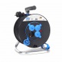 Кабелен удължител на макара. Макарата е направена от специална пластмаса и има галванизирана стойка. Има ергономична ръкохватка и ос за прецизно навиване и развиване на кабела. Четири заземени гнезда със самозатварящи се капачки. Термозащитена - индикатор показва дали има прегряване или претоварване. Кабел с пластмасова изолация. Цвят на кабела - черен. Диаметър на макарата - 240 мм. 0283904