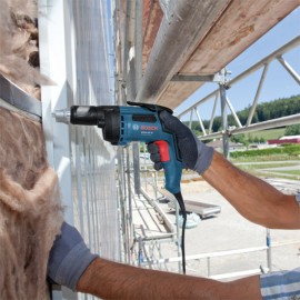Високооборотен професионален винтоверт, особено подходящ за плоскости от гипсокартон. Тих и особено точен изключващ съединител. Тънък дълбочинен ограничител, свалящ се, без при това да се променя установената дълбочина. Стабилизирана електроника за работа с различни по твърдост материали. Бутон за застопоряване на прекъсвача. Ляв и десен ход. 015031