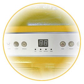 Професионален изсушител, предназначен за ежедневна употреба, специално разработен за нуждите на строителството и довършителните дейности. С капацитет от 50 л./ден мобилният влагоуловител е идеален за сушене на помещения след шпакловка, полагане на мазилка и боядисване и други материали, нанасяни чрез мокри процеси. Контролът на влажността е от съществено значение за полагането на паркети. С помощта на мощния мобилен влагоабсорбатор можете да постигнете в контролирана обстановка, необходимите ви идеални условия. Предназначен за ежедневна употреба и снабден с вграден хигростат, влагоуловителят се справя отлично с абсорбирането на влагата от складови помещения, архиви, фитнес зали. Принципът на работа на влагоуловителя (наричан още изсушител, влагоабсорбатор) се изразява в отнемането на излишната влага чрез кондензирането и вътре в машината, чрез охладителни елементи. Контактът на въздуха с охладителните елементи води до кондензация на влага. Отделеният при процеса конденз се събира във вграденият резервоар, а изсушеният въздух преминава през кондензатор и се загрява до температура, малко по-висока от тази на околната среда (въздуха в помещението). Изцяло металният корпус на влагоуловителя е с практични колела и ръкохватка за лесно транспортиране и препозициониране на машина. С тегло от само 36 кг., благодарение на колелата и ръкохватката, професионалният валгоуловител може лесно да бъде преместен, дори ако трябва да се преодолеят стъпала и неравности. Вграденият, в долната част на корпуса, резервоар за вода е с обем от 5,5 литра и е снабден с поплавък, който при запълване на съда с вода, изключва влагоуловителя и задейства светлинна сигнализация на контролното табло. При необходимост от продължителна или денонощна работа на влагоабсорабатора, или работа при много висока влажност, към съда за вода може да бъде свързан маркуч за отвеждане на водата в канал или извън помещението. Това позволява непрекъсната работа на мобилния влагоуловител, без необходимост от изключване за обслужване. В горната част е разположен практичен и опростен пулт за микропроцесорно управление на режимите на работа на изсушителя. Бутонът за включване се намира в десния край на контролния панел. При натискане на бутона, изсушителят се включва в режим на непрекъсната работа. Стойността на влажността, зададена в този режим на работа на влагоуловителят е 50%. До него е разположен бутонът за настройка на таймера. Той изпълнява няколко функции - когато влагоуловителят е в режим на готовност (не е включен в работен режим) чрез него може да бъде зададено времето след което да се включи - функция „отложен старт“. В работен режим, чрез този бутон, можете да зададете времето, след което влагоуловителят да се изключи - функция „отложен стоп“. В ляво е разположен индикатор за запълване на вградения 5,5 литров контейнер за вода. До него е бутонът за активиране на продължителен режим на изсушаване. Важно е да се знае, че този режим на работа е полуавтоматичен, можете да задавате продължителност (време) за работа, но не можете да зададете стойност на изключване на изсушителя при достигане на определена стойност на влажността.