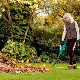 Свобода без кабел. Удобна работа благодарение на ергономичен дизайн и малко тегло. Syneon чип - интелигентно управлявана енергия за всеки проект. Акумулаторният листосъбирач осигурява свободата да работите навсякъде. 18V литиево-йонен акумулатор позволява 14 минути непрекъсната работа, идеален за много приложения. Ръкохватка с меко противоплъзгащо покритие за удобна работа във всяко положение. Лесно отстраняване на листа от тераси и градински площи. 059257